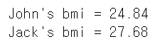 # 키는 입력받을 때 cm 단위로 입력받지만, 계산을 위해 m 단위로 변경